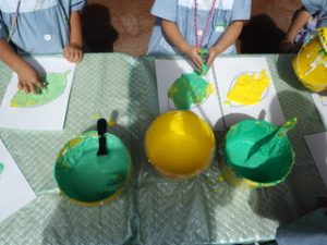 いつも手を洗ったり洗濯したりしているせっけん泡にボンドと絵具を混ぜて葉っぱに色を付けていきます😮