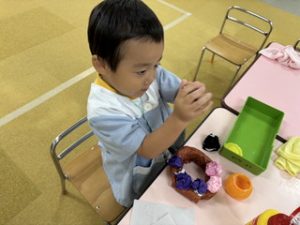 毛糸を巻き付ける作業が少し難しい様子もありましたが、最後まで頑張って作り上げることが出来ました😊❤️