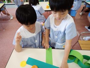 好きな色の折り紙を使ったり、好きなポーズの忍者を作ったりと思い思いに作っています💕