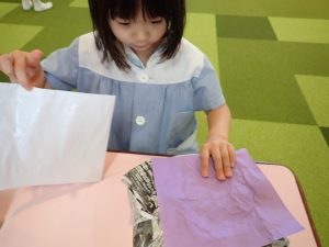 子ども達は、色の滲みやグラデーションや、きらきらした塩に興味津々💕