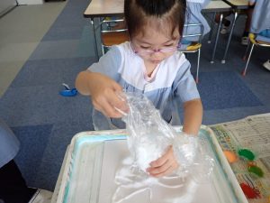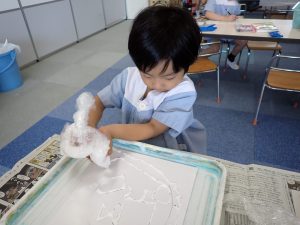 年長組での特殊画では、塩を使ったソルトペインティングに挑戦しました😊