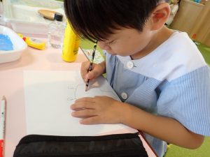 画用紙に鉛筆で好きな絵を描き、ボンドで線をなぞります✏