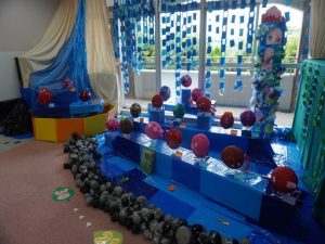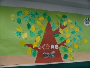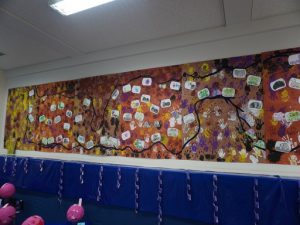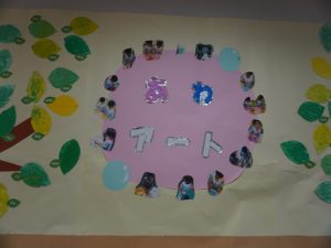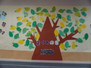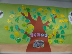 泡アートでは作った葉っぱを集めてクラス毎に大きな木を完成させました🌳