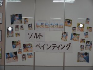 「塩の絵」の展示では、子どもたちが好きな絵を描き塩を使って完成させました🧂