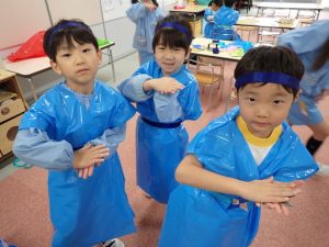 朝、登園してきた子どもたちは、いつもと違う先生たちの姿にびっくり!