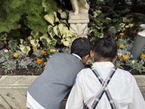 お花の観察をしていると、子どもたちが「なにしているの~?」と興味津々‼️