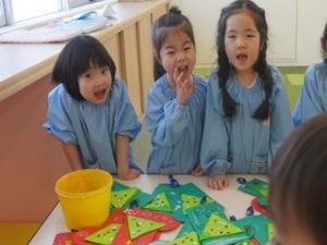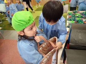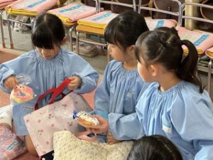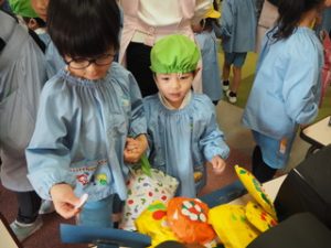 登園してきてからどんな品物があるのか楽しみにしている子どもたちもいました💞