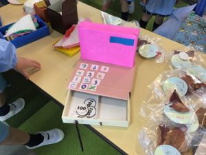 「物を買うためにはお金が必要であること」「物を売ったり、働いたりすることでお金がもらえること」など、遊びを通してお金の流れや大切さに触れることができました。