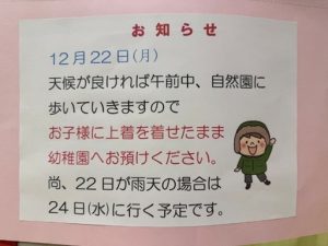 さて、12月22日(月)には、自然園へお散歩に出かける予定です☀️