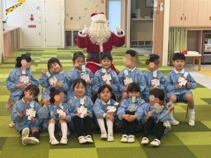 12月24日、幼稚園のプレイルームに、なんとサンタさんが来てくれました❣️