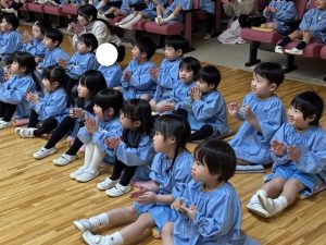 また、年長組の子どもたちは、現在取り組んでいる発表会の活動と重ね合わせながら、「先生たちも練習したのかな」「舞台って楽しそうだね」と、表現する側の気持ちに思いを巡らせ、より深く劇を味わっていました。舞台を見る中で、表現する楽しさや、仲間と力を合わせて一つのものを作り上げる喜びにも気づいているようでした🥰