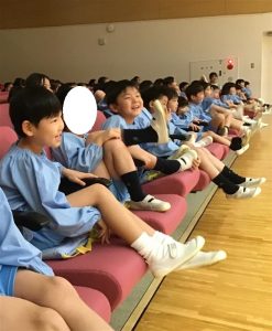 幕が開くと、いつも身近にいる担任の先生が舞台に立ち、さまざまな動物になりきって演じる姿に、子どもたちは目を輝かせ、笑顔いっぱいで舞台に見入っていました👀