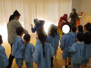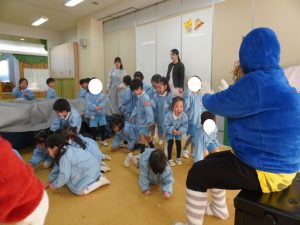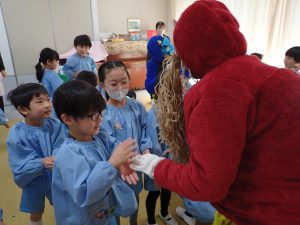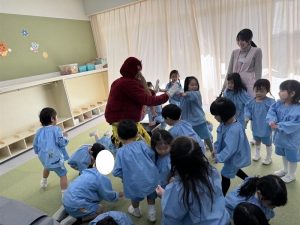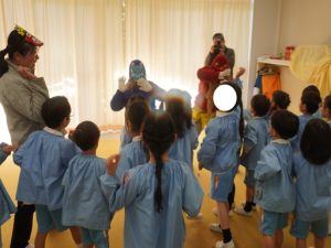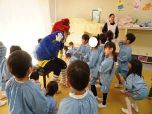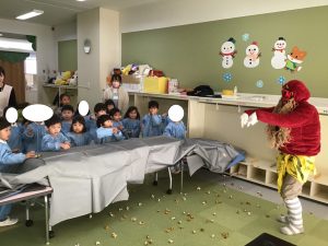 2月3日、幼稚園では節分の行事として豆まきを行いました。