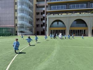 外遊びでは、広い園庭の中で思い思いに体を動かし、のびのびと過ごしています🌿